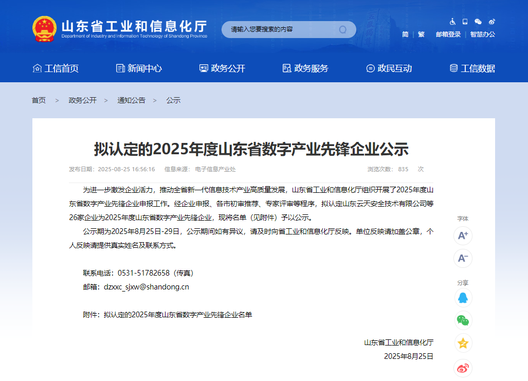 2025年8月25日,山東省工業和信息化廳公布“2025年度山東省數字產業先鋒企業”名單,全省共26家企業入選,青島中電綠網新能源有限公司位列其中。公司憑借在新型電力系統數字化、源網荷儲一體化及新能源微電網領域的創新成果,成為青島市唯一以“新能源+數字化”雙輪驅動獲此殊榮的企業。這一榮譽標志著公司在數字能源領域的技術創新與市場實踐再獲省級權威認可。