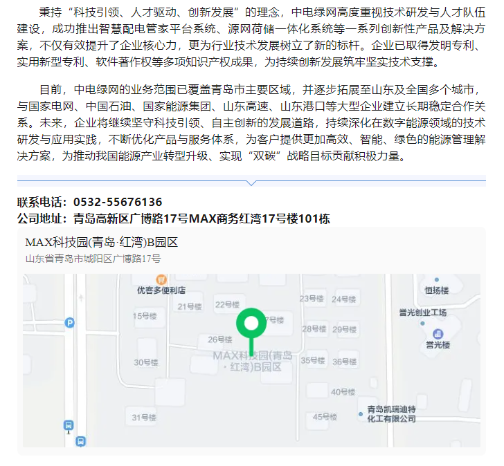 2025年6月5日,青島高新公眾號發布一篇“中電綠網:科技創新賦能“雙碳”戰略 讓能源管理更“聰明””報道,具體內容如下: